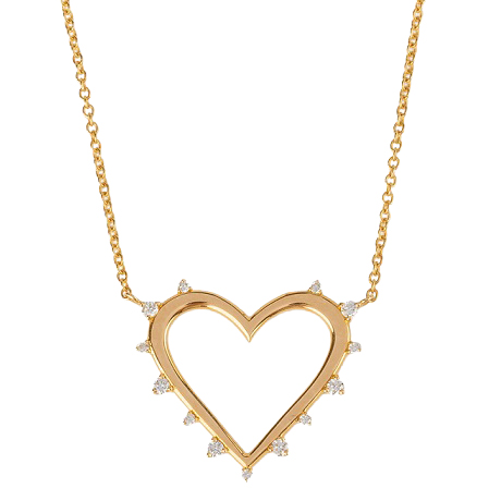 Delicate and full of sentiment, this open heart pendant is adorned with 0.10 carats of diamonds set in 13 stones, offering a soft, sparkling accent to its graceful silhouette. Crafted in 2.41 grams of 18k gold, its a timeless symbol of loveperfect for everyday wear or a meaningful gift.