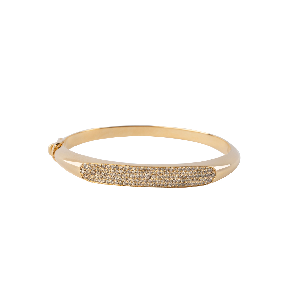 Crafted in 17.92 grams of 18K gold, this stunning bangle is adorned with 1.64 carats of brown diamonds that create a warm and captivating sparkle. The rich hues of the diamonds beautifully complement the sleek gold design, resulting in a sophisticated and luxurious accessory that effortlessly enhances any outfit.