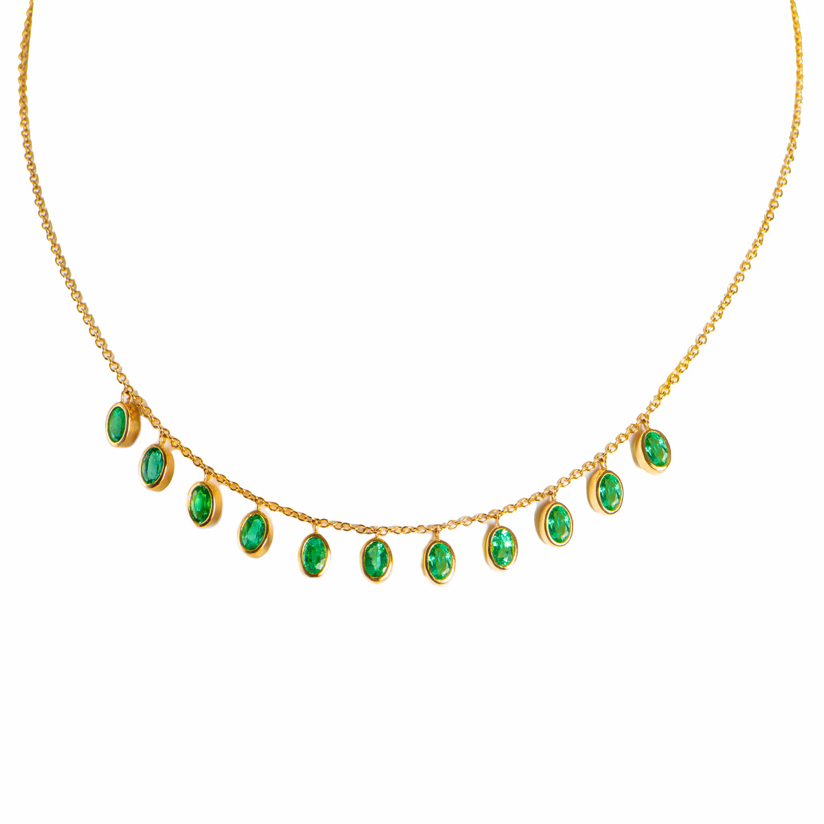 Our oval emerald dangle necklace is an exquisite piece of jewelry that showcases the lush green allure of emeralds, with a total weight of 2.47 carats. This necklace beautifully blends timeless elegance with the charm of nature.