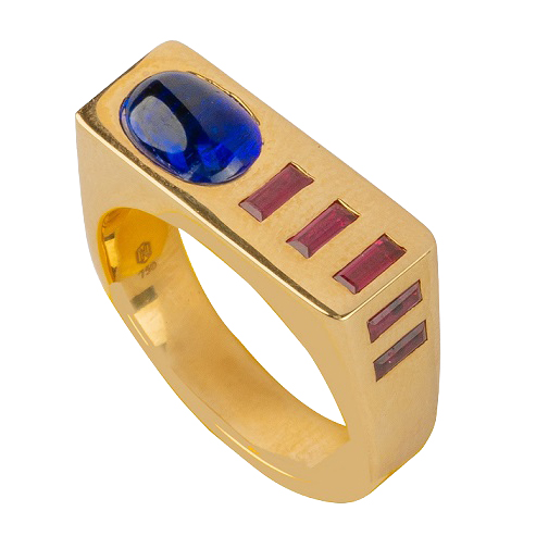 Crafted in 9.66 grams of 18K gold, this elegant Tanzanite and Ruby Ring showcases a vibrant blend of color stones totaling 2.19 carats, set across six stones. The deep blue hues of the tanzanite beautifully contrast with the rich red of the rubies, creating a striking and luxurious statement piece. This ring adds a bold touch of color and sophistication, perfect for elevating any look with timeless elegance.