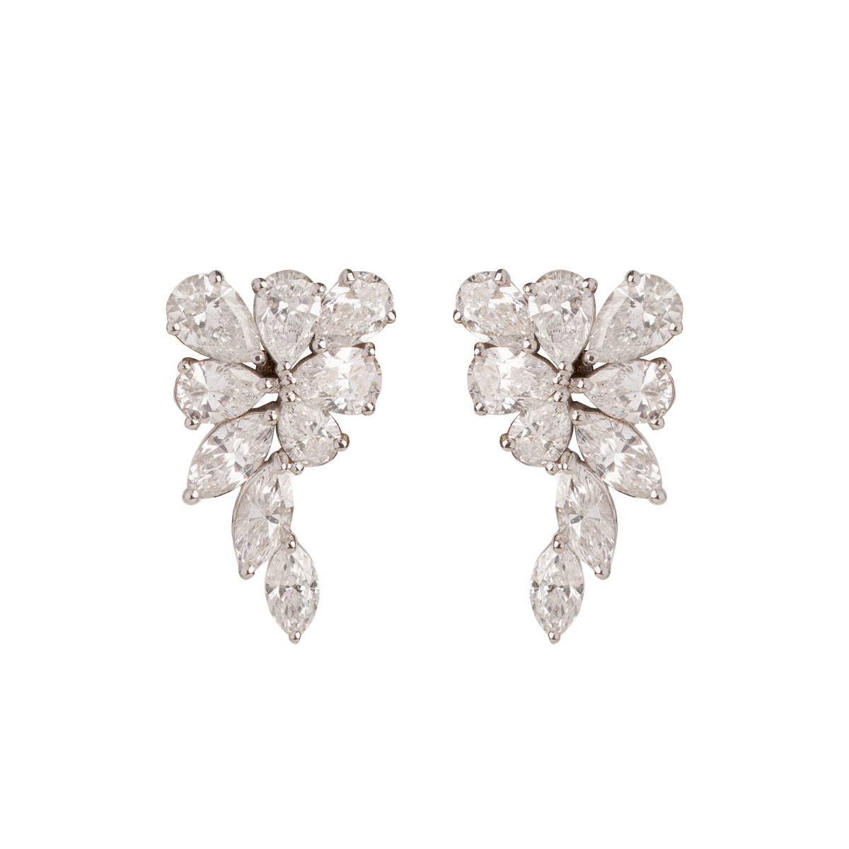 Graceful curves of Pear and Marquise Diamonds of 3.45 carats create a delicate climber that gently embraces the earlobe. Designed to add a touch of refined sparkle, this piece moves effortlessly with you, perfect for those soft special occasions.