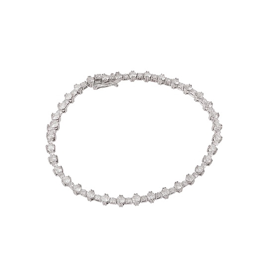 Elevate your style with the exquisite beauty of our white gold 18k diamond prong set bracelet. This stunning bracelet showcases a remarkable array of prong-set diamonds that alternate in size, boasting a total diamond weight of 3.99 carats.